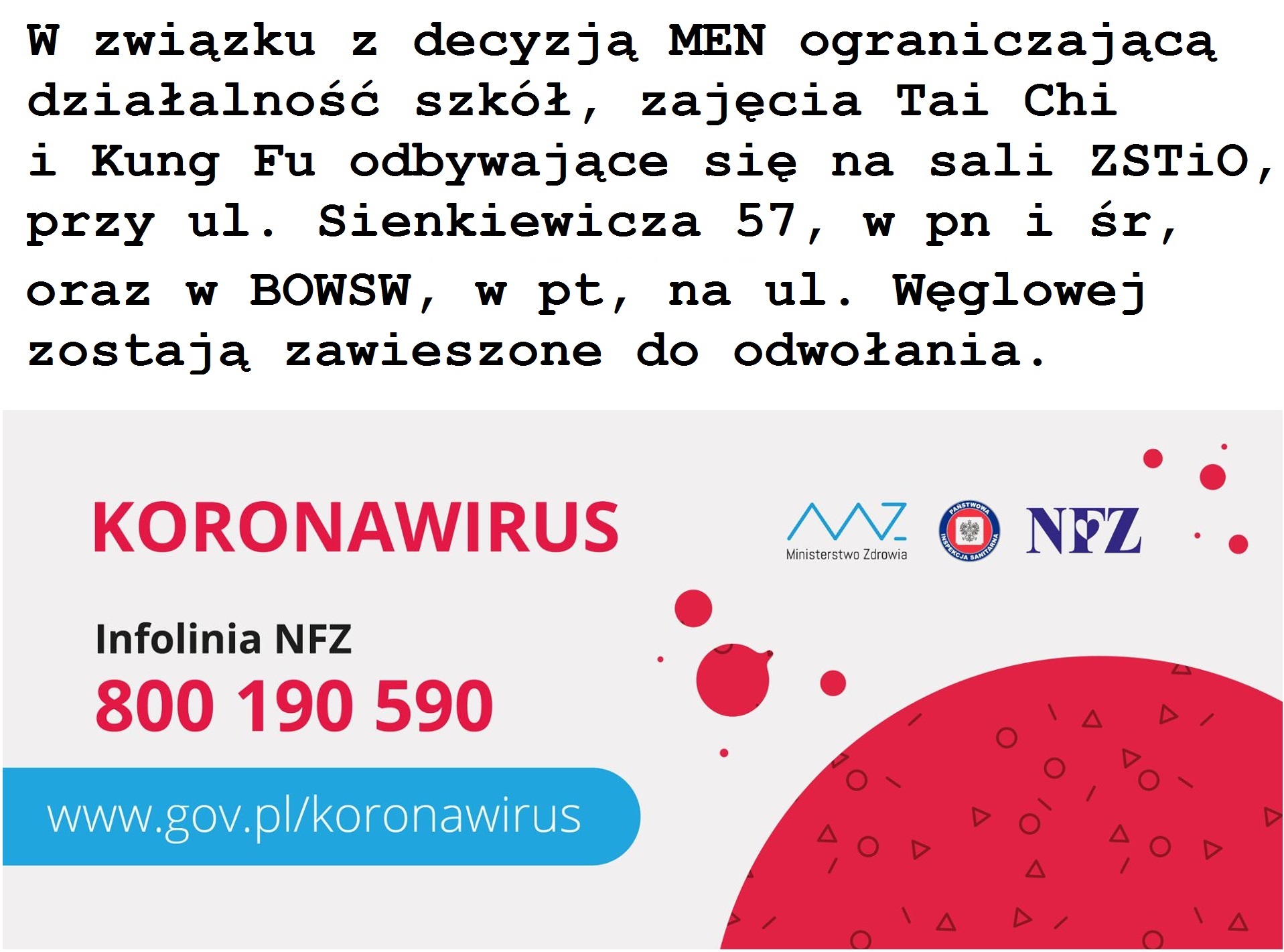 Poniedziałek Środa Taiji 18:30 – 20:00 19:00 – 20:30 Treningi skierowane są do osób chcących zadbać o swój stan fizyczny i psychiczny, a także przyjemnie i efektywnie spędzić wolny czas. W zajęciach można wziąć udział bez względu na formę oraz przygotowanie fizyczne. Jeżeli ćwiczysz i chciałbyś Dowiedz się więcej
